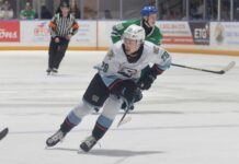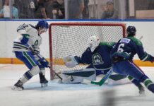 Veteran forward Jaxen Gauchier scored twice to lead Team Sakic to a to a 7-4 win in the Swift Current Broncos' Blue...