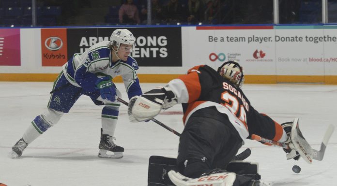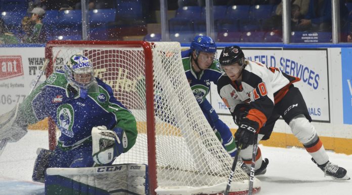 Saturday, Gage Nagel scored both goals in a 2-1 win over the host Yorkton Terriers. Theron Watteyne and Aston Annesley added assists, while Berney Weston earned the win in goal.