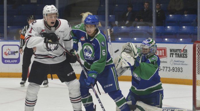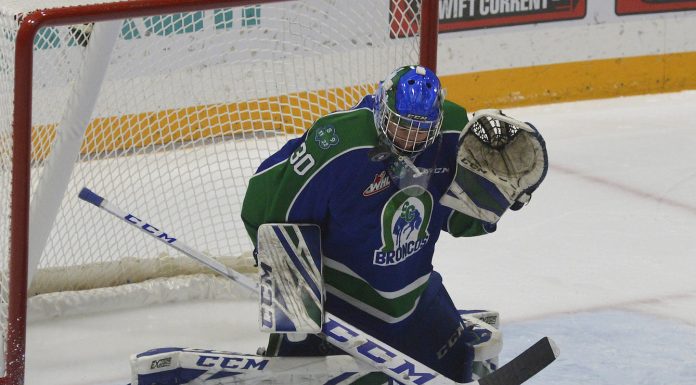 The Swift Current Broncos got 54 saves from Isaac Poulter and scored six