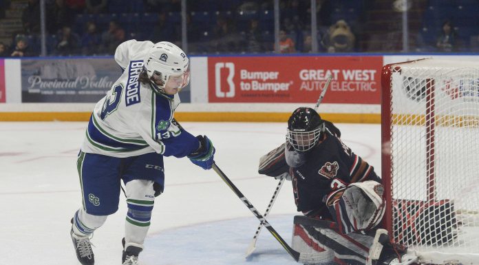 The game was essentially over in the opening period when the Hitmen scored four goals on 18 shots. Cael Zimmerman opened the scoring only 3:29 into the game. Ethan O’Rourke put a rebound home for his fifth straight game...