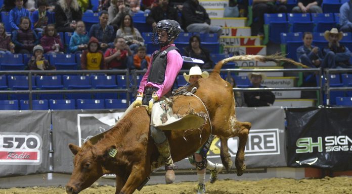 Saddle Bronc - Casey Bertram (Piapot,), score 76.