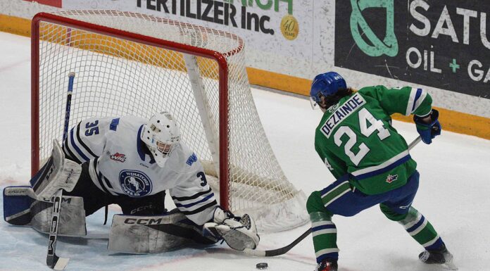 Carlin Dezainde was the overtime hero with 43 seconds remaining as he scored his 24th goal of the season. His shot from the face-off dot trickled over the line to seal the win. The Broncos...