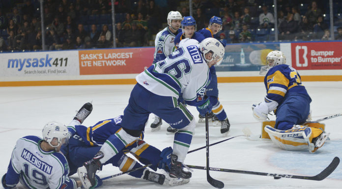 The Swift Current Broncos dropped their third straight game in a 5-2 loss to the visiting Saskatoon Blades Wednesday. The Broncos fired 44 shots on goal but could only beat Tyler Brown twice in the loss in front of a sold out crowd in a meaningless game in the Eastern Conference playoff picture.