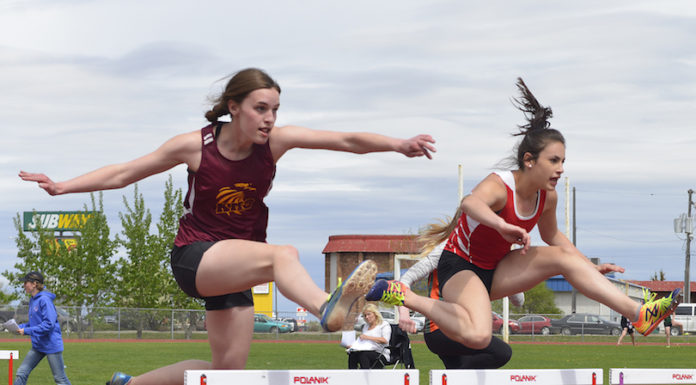 Grade 10 Kalea Sauder easily won the Junior Girls 80 Metre Hurdles in 12.46 seconds. She added a win in the 100 Metres in 12.99 seconds. Sauder got a third event win in Long...