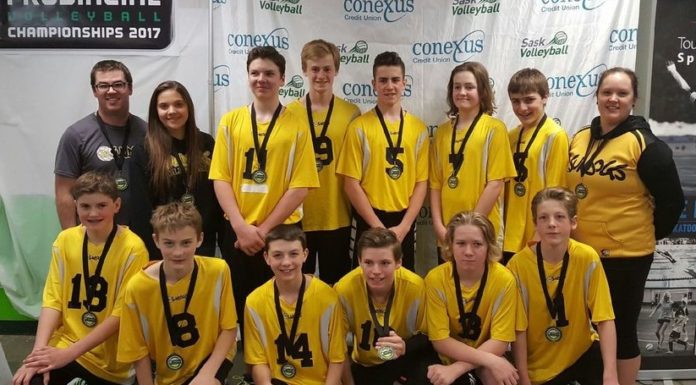 The Swift Current 14U Boys Junior SunDogs brought home a silver medal from the Saskatchewan Volleyball Association Conexus Provincial Championships in Saskatoon over the weekend. The SunDogs finished with four wins and three losses to place second out of 20 teams at provincials after entering the weekend ranked eighth.