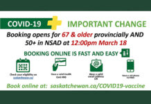 Saskatchewan’s COVID-19 vaccination appointment booking network expanding for all residents 60 and over starting...