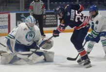 The Broncos were led by three goals and one assist from Derric Dulatre as Calder Jones picked up his second straight win in goal.