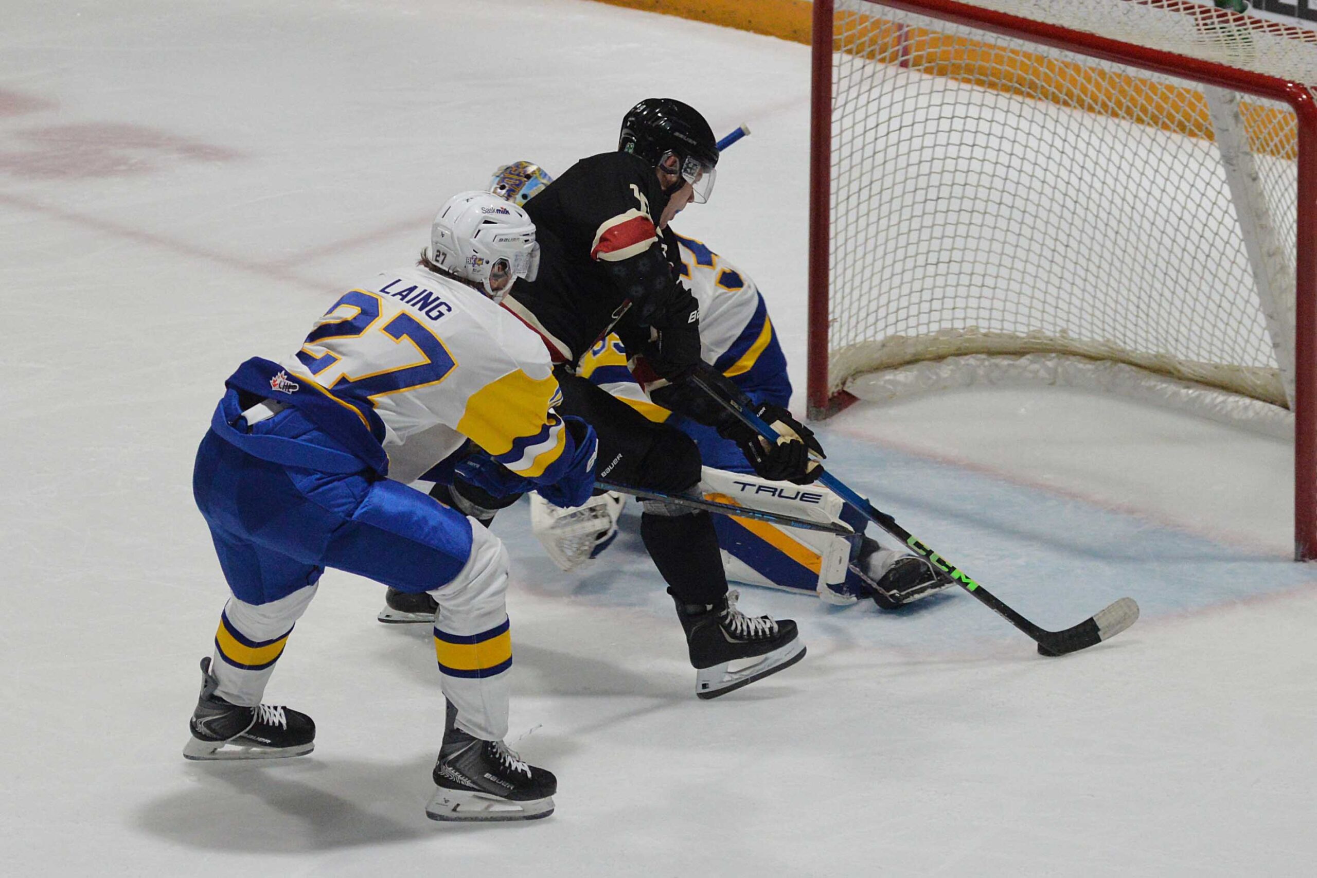 The Blades scored the only goal of the first period when Hunter Laing scored 13 seconds into a power play for his ninth goal of the season.