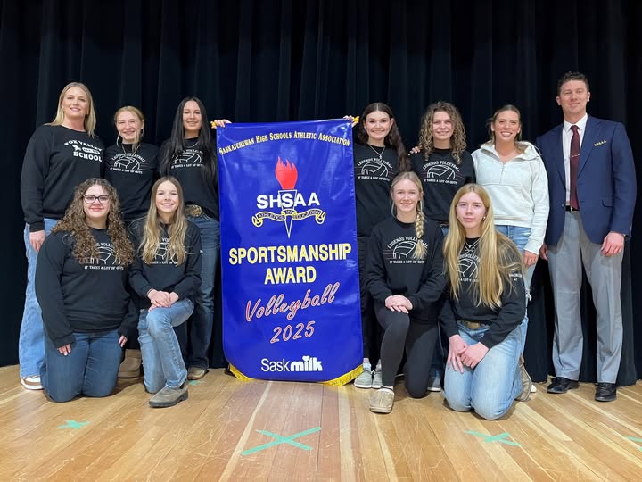 The SHSAA Sportsmanship banner is awarded to one team, in each classification, who best displayed the values of sportsmanship at provincial championships. SWAC had two teams whose athletes, coaches and fans’ sportsmanship stood out amongst the rest of the teams in attendance. Both teams received high praise for their sportsmanship from officials, organizers, SHSAA board of director members and volunteers at their provincial championship. Congratulations to both the Maple Creek girls volleyball team and the Fox Valley girls volleyball team. Both of these programs showed that competitiveness and sportsmanship can be displayed hand in hand.